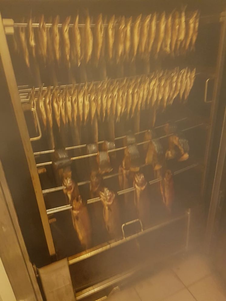 Świeże i wędzone ryby dostępne w punkcie sprzedaży.